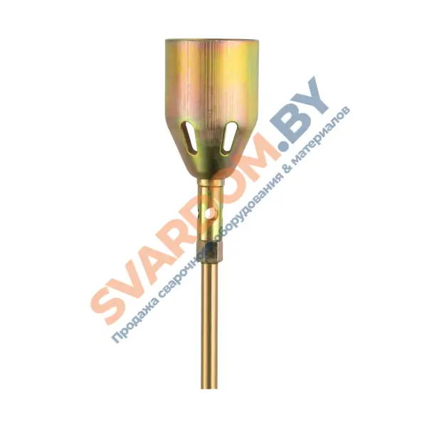 Горелка ручная газовоздушная пропановая с одним соплом диаметром 50 мм для нагрева изделий и заготовок из черных и цветных металлов. Горелка с рычагом подачи горючего газа. Длина горелки 900 мм.