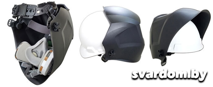 Отличительной чертой хамелеонов SUN-9 является увеличенный размер щитка, который позволяет использовать респиратор и устанавливать маску на строительную каску.