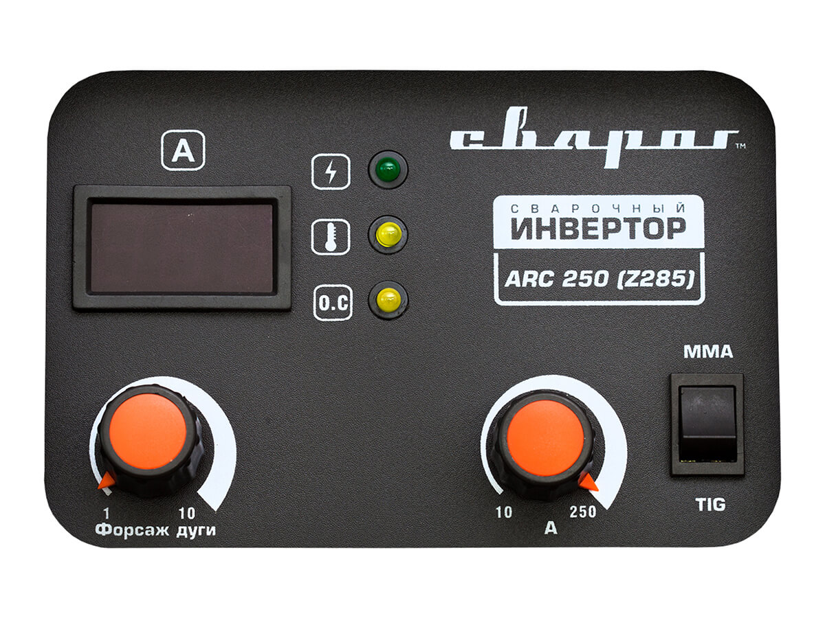 Сварочный инвертор серии STANDART ARC 250 (Z285) — профессиональный сварочный аппарат, предназначенный для ручной дуговой сварки (MMA) и ручной аргонодуговой сварки (TIG) на постоянном токе изделий из низкоуглеродистой стали в производственных условиях. При аттестации данный аппарат получил высокую оценку экспертов НАКС.