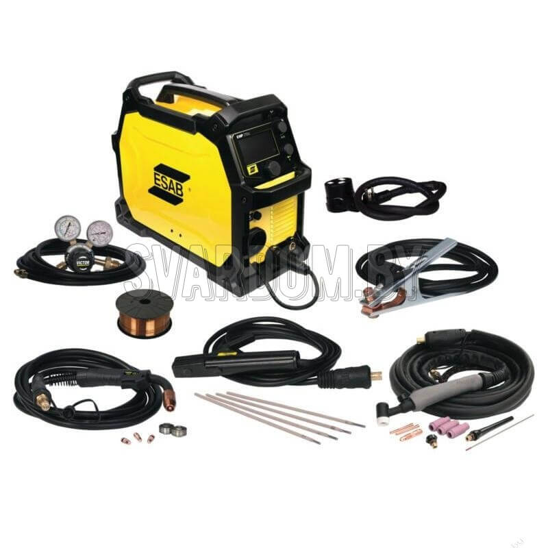 REBEL™ EMP 215IC - это многофункциональный сварочный аппарат, предназначенный для сварки различных материалов (включая сталь, нержавеющую сталь и алюминий) с использованием различных процессов сварки, таких как MIG/MAG (GMAW), дуговая сварка с покрытым электродом (SMAW) и TIG-сварка (GTAW).